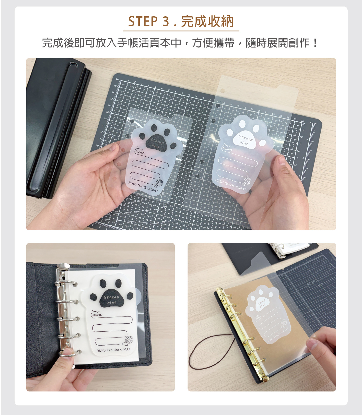 完成後即可放入手帳活頁本中,方便攜帶,隨時展開創作!