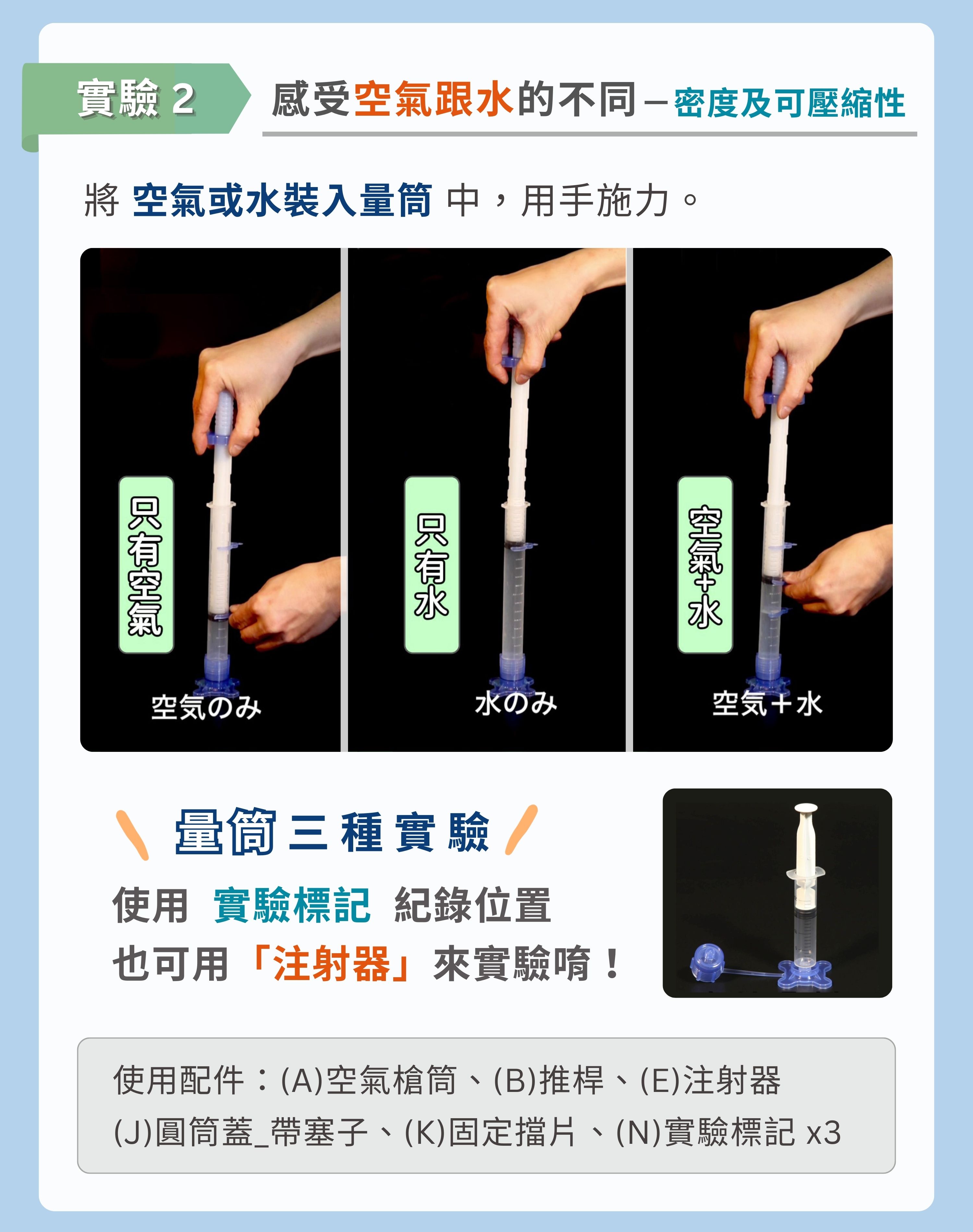 ▶ 實驗2|感受空氣跟水的不同-密度及可壓縮性