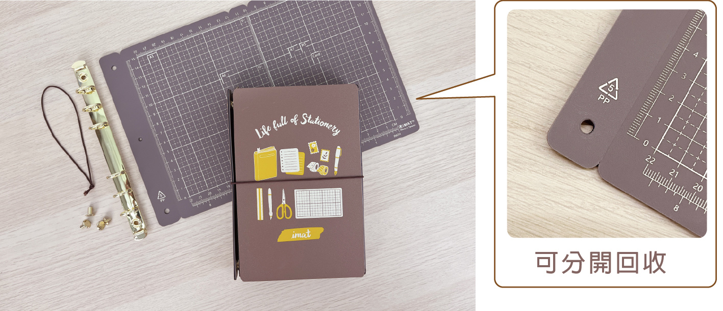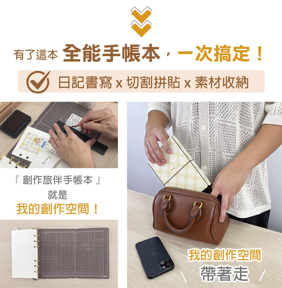 第一本結合「切割墊」的手帳本,外出旅行、日常便利攜帶。內裏網格+四周刻度,裁切都能精準對位!