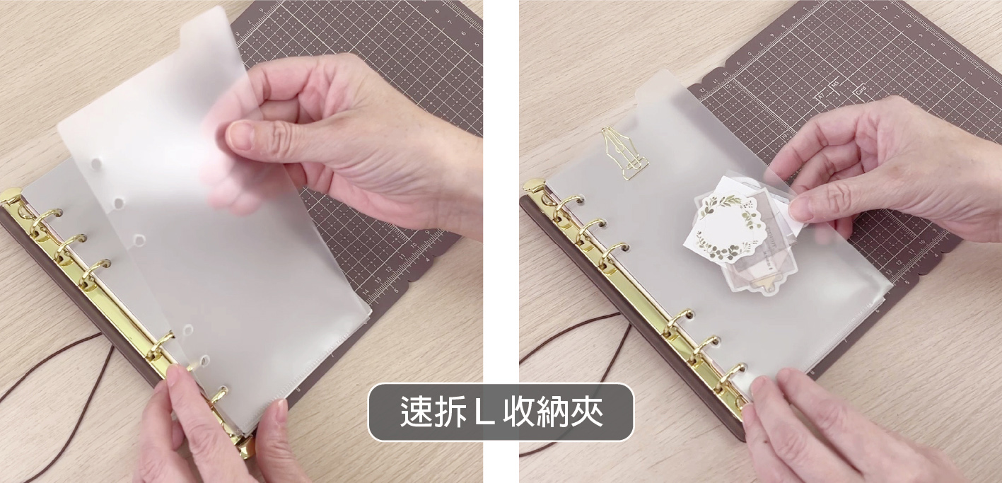 首創快拆圓孔 L 夾,Bible Size 6孔,隨手收納素材,再也不用拆活頁環。