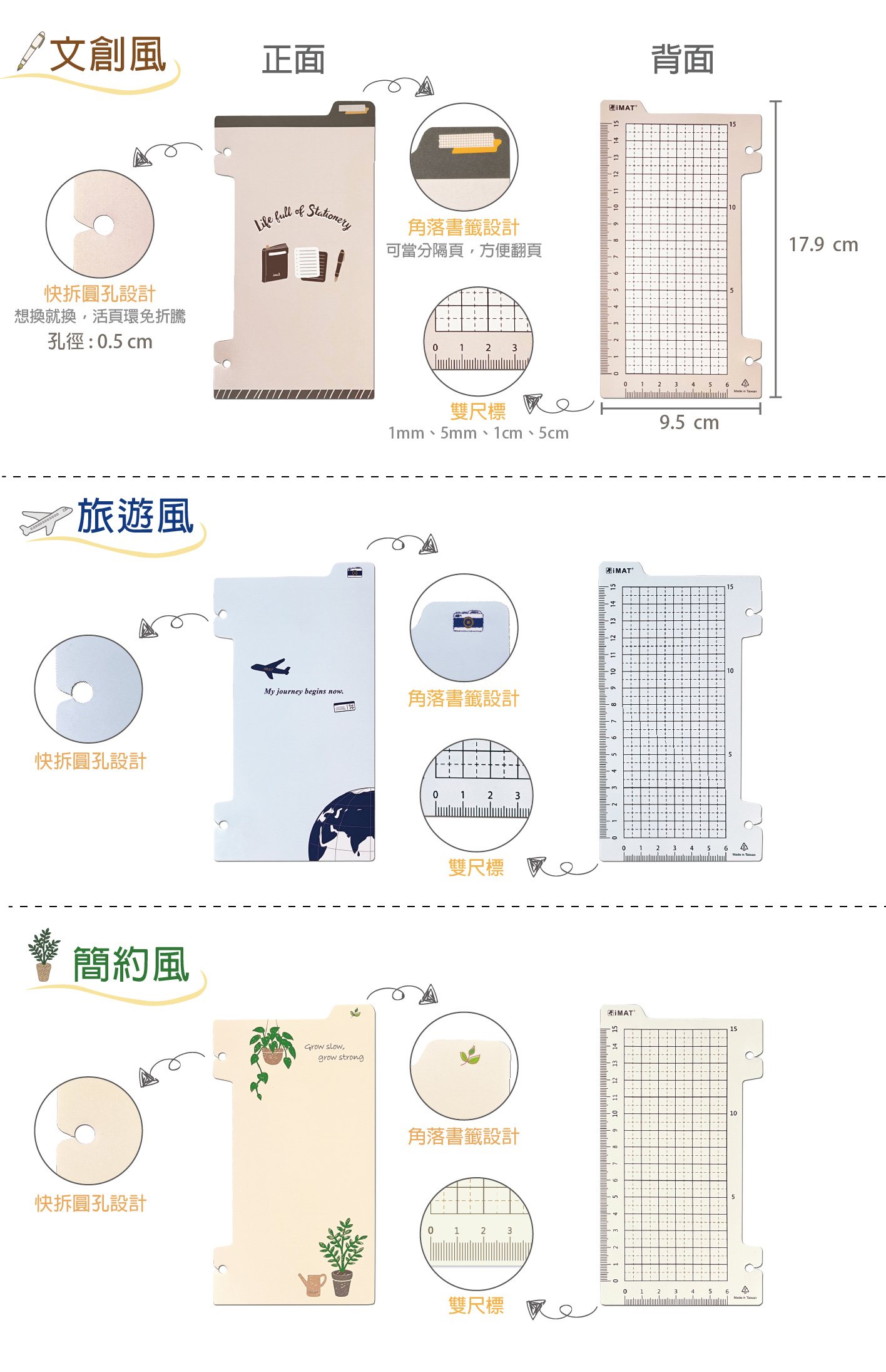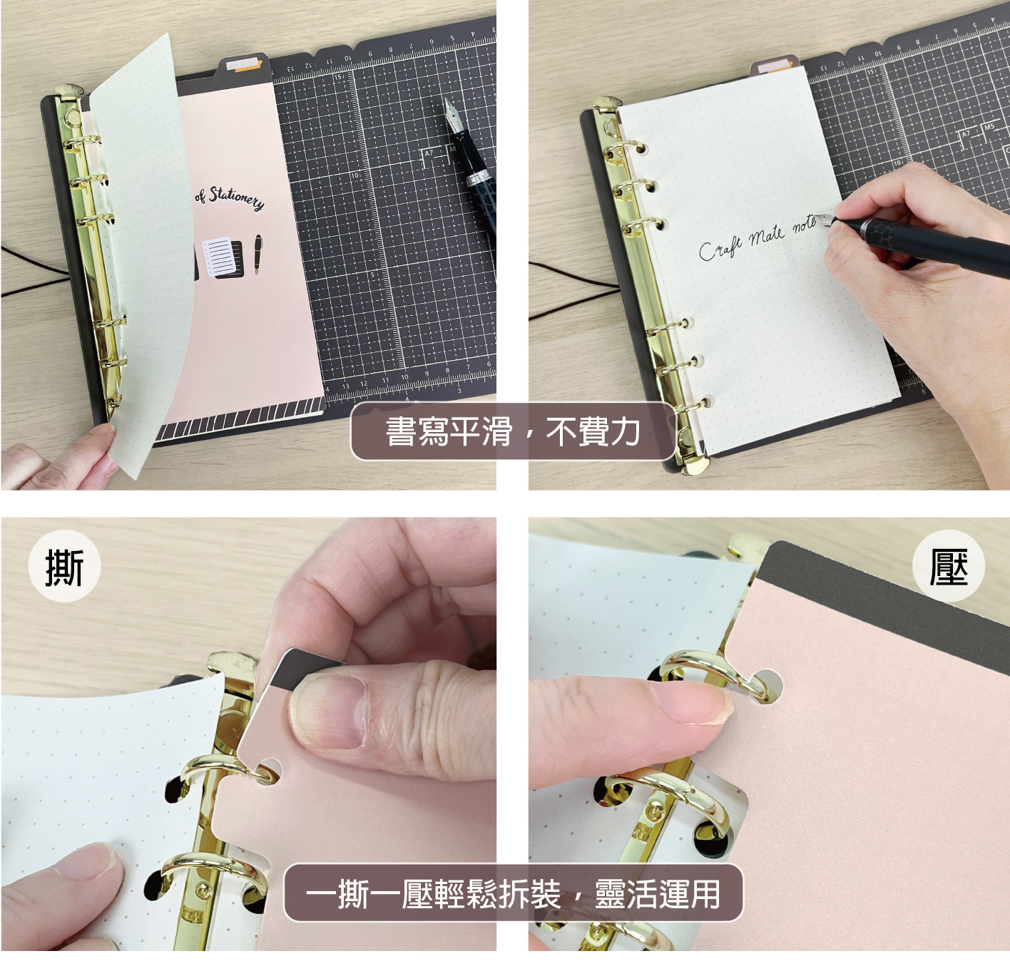 一撕即拆、靈活組裝,輕鬆更換頁序,搭配主題風格圖案x網格尺標,創作更便利!