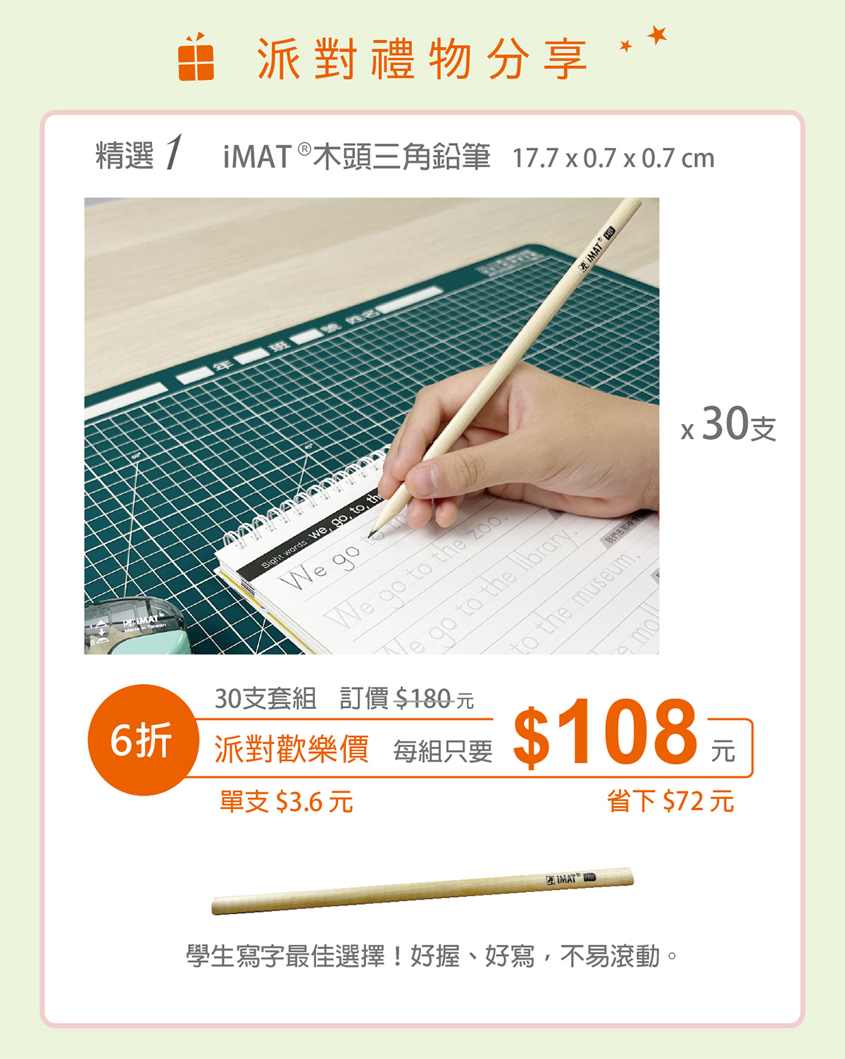 精選1-iMAT®木頭三角鉛筆 x 30 支