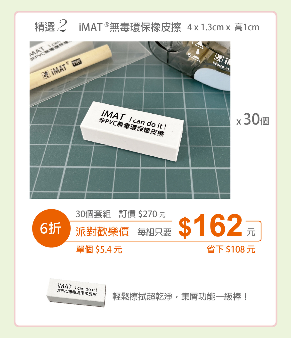 精選2-iMAT®無毒環保橡皮擦 x 30 個