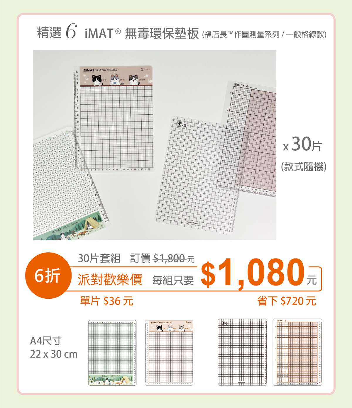 精選6-iMAT®無毒環保墊板 (福店長™作圖測量系列/一般格線款) x 30片